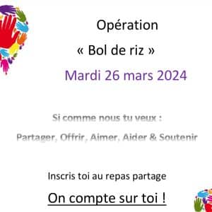 Dans le cadre de la pastorale, nous organisons différents temps forts au mois de mars qui s’inscrivent dans un projet de sensibilisation à la solidarité, particulièrement important en période de Carême. Le point d’orgue de ces temps forts sera l’opération « Bol de riz » qui aura lieu le Mardi 26 mars 2024. Cette action se […]